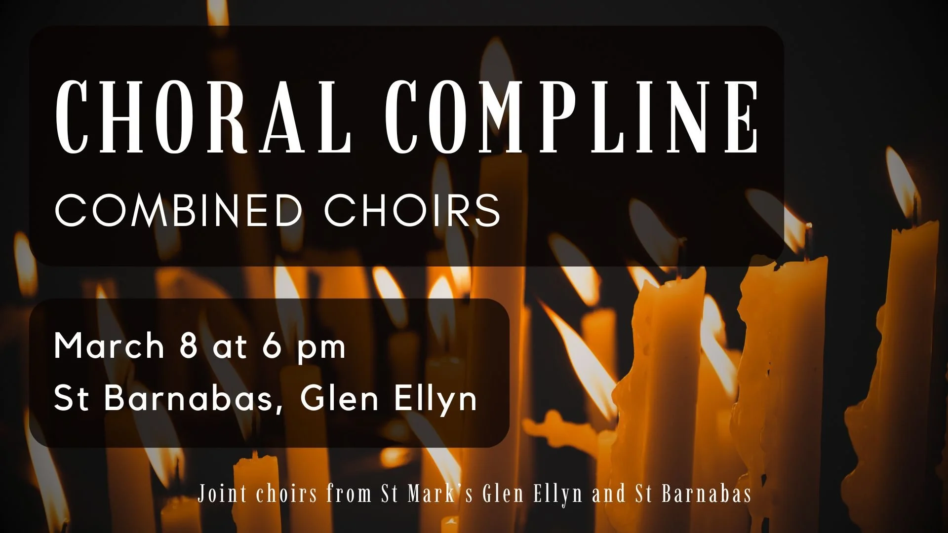 Join combined choirs from the Episcopal parishes in Glen Ellyn (St. Mark's and St. Barnabas) for a beautiful and meditative compline service.